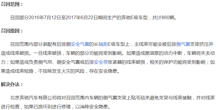 以上是2018年5月25日,北京奔馳汽車公司有限公司,因汽車主線束破損而召回汽車的一系列新聞。其中原因是”汽車線束破損,車輛的部分功能受到影響。如果造成燃油泵的動力中斷,車輛將失去動力;如果造成負(fù)責(zé)側(cè)氣簾、側(cè)安全氣囊或后排安全帶張緊器的線束破損,相關(guān)的保護(hù)功能將受到影響;如果造成線束短路,不排除發(fā)生火災(zāi)的風(fēng)險,存在安全隱患”。因此,我們應(yīng)該注意預(yù)防和防范。